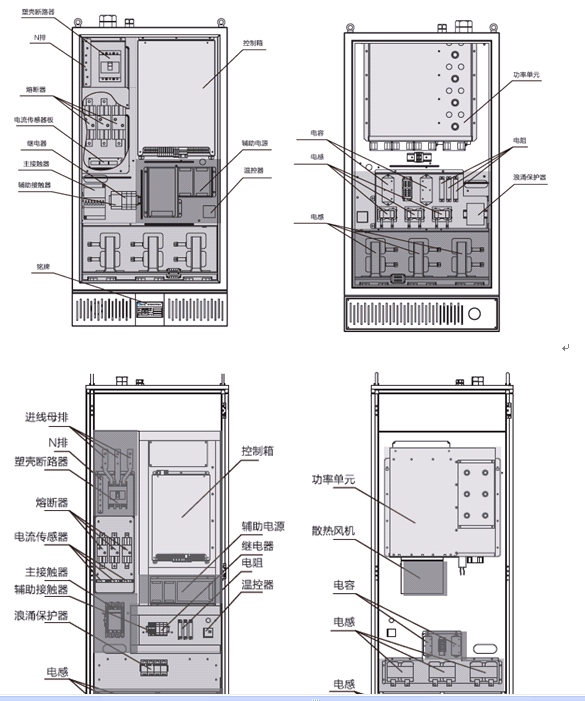 ·模塊化柜體結構,節(jié)奏合理,電纜可從裝置柜體頂部或底部進入,安裝靈活。800mm寬的有源濾波柜相線濾波能力達到300A,零線濾波能力達到600A。