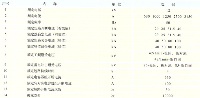 真空斷路器主要技術參數