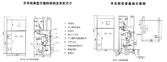 XGN2-10箱型固定式金屬封閉開關設備(以下簡稱開關柜),主要用于3.6、7.2、12KV三相交流50HZ戶內系統中作為接受與分配電能之用,特別適合用于頻繁操作的場合。該開關柜符合國家標準GB3906及國際標準IEC298,并具有嚴密的“五防”閉鎖功能。