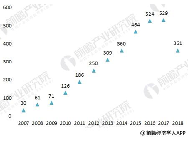 圖表4:2007-2018年低壓配電柜行業相關專利公開數量變化圖(單位:項)注:2018年數據截至5月底