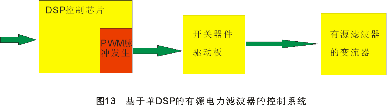 我們可以選擇不同的數(shù)字控制系統(tǒng)來實(shí)現(xiàn)。通常的控制系統(tǒng)一般有基于單數(shù)字信號(hào)處理芯片的帶有PWM信號(hào)的控制系統(tǒng),即如圖13所示的控制系統(tǒng)。由于DSP本身帶有PWM脈沖產(chǎn)生部分,因此采用單片的DSP就可以實(shí)現(xiàn)有源電力濾波器的控制系統(tǒng)。