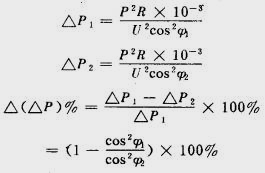由上式可計算出功率因數由cosφ1提高到cosφ2時對降低可變損耗的效益。