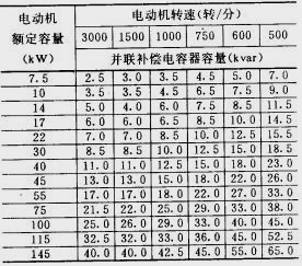 對于用量最多的每分鐘1500轉和3000轉的電機用額定容量(kW)30%士0.5(kvar)的估算方法,可迅速簡便地求出所需補償電容的容量。以30kW電機為標準,如果電機容量小于30kW的每臺增加 0.5kvar。容量大于30kW的每臺就減少0.5kvar。